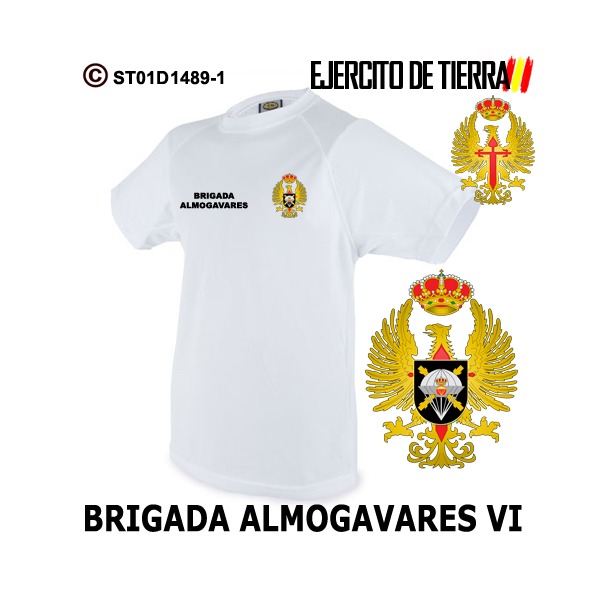 Camiseta Brigada Almogávares VI, puedes adquirirla en modelo bandera en marino o blanco y en modelo liso en negro, marino y blanco, para que elijas la que más te gusta.