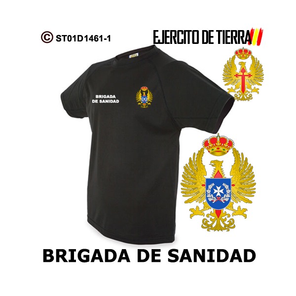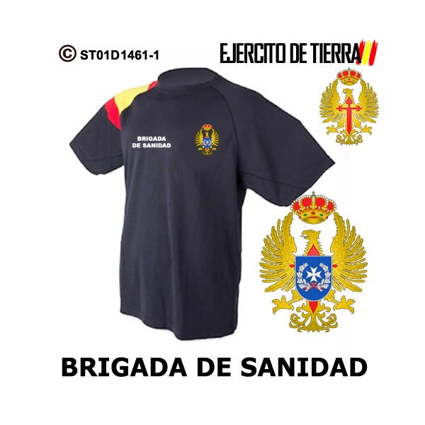 Camiseta Brigada de Sanidad, puedes adquirirla en modelo bandera en marino o blanco y en modelo liso en negro, marino y blanco, para que elijas la que más te gusta.