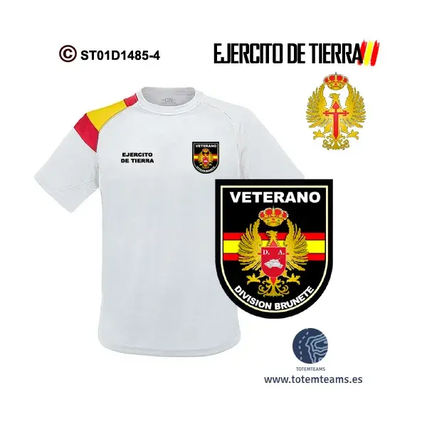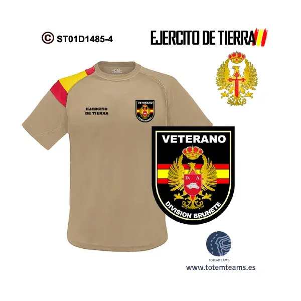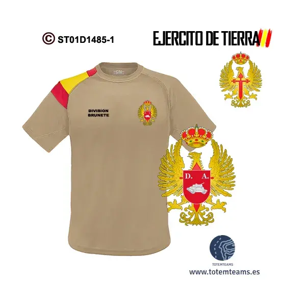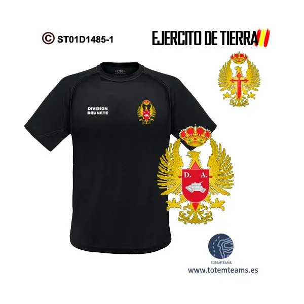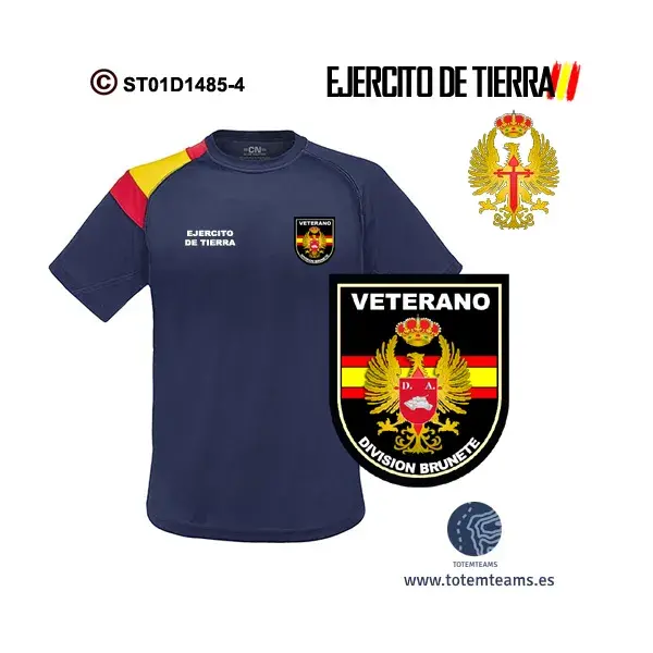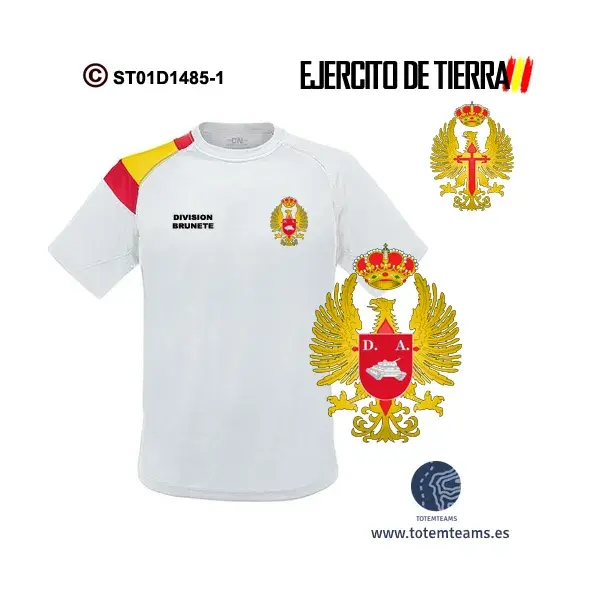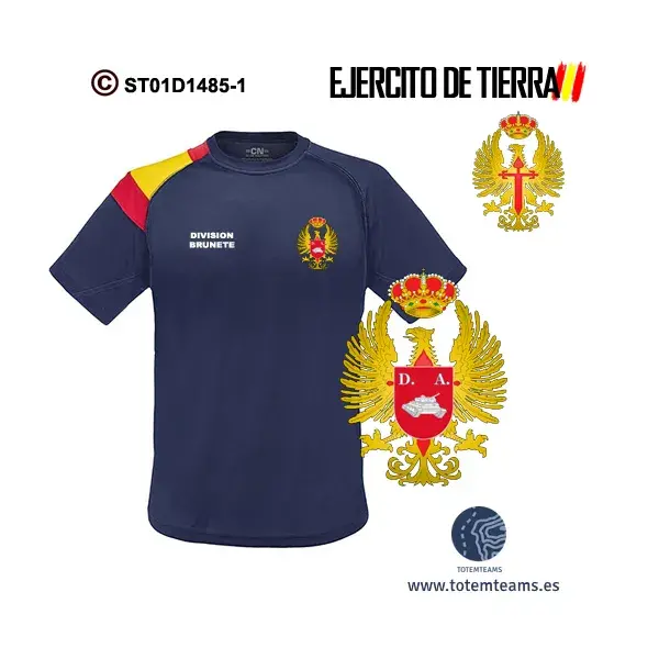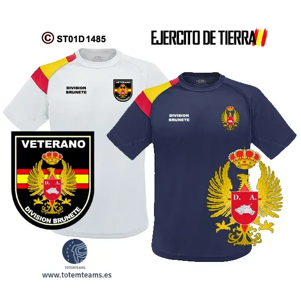Camiseta División Brunete Ejército de Tierra, puedes adquirirla en modelo bandera en marino o blanco y en modelo liso en negro, marino y blanco, para que elijas la que más te gusta.