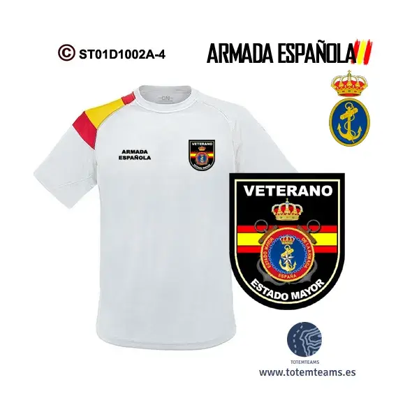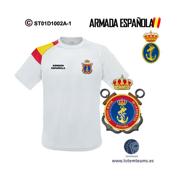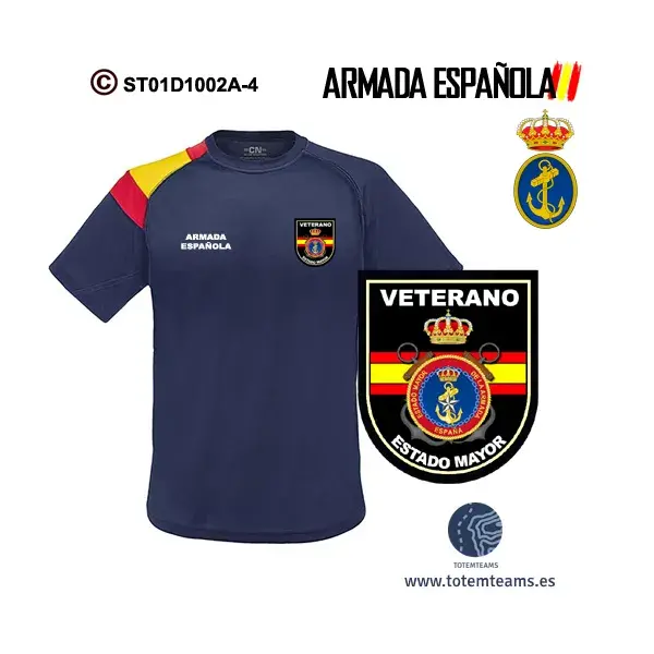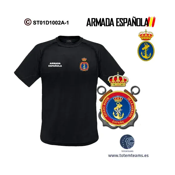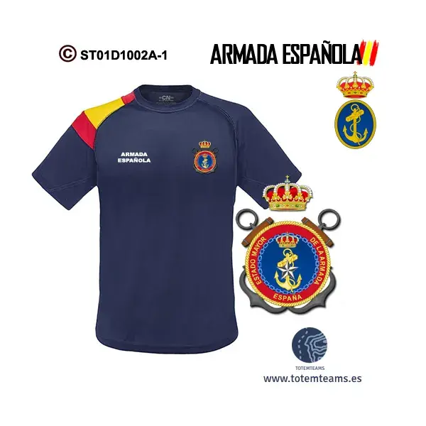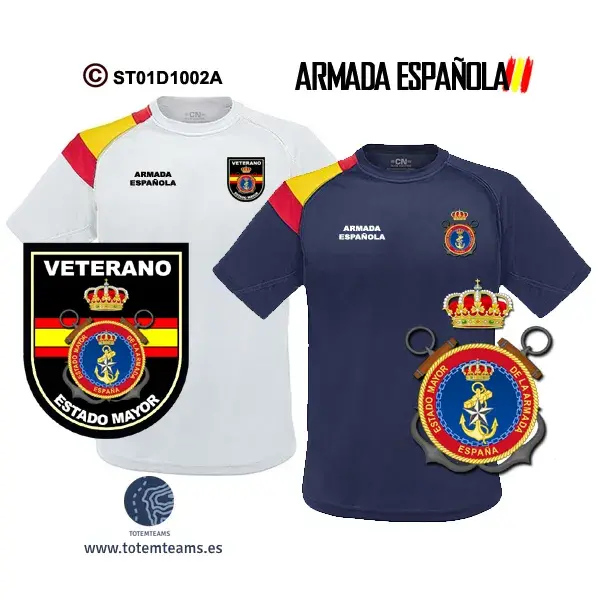 Camiseta Estado Mayor Armada Española, puedes adquirirla en modelo bandera en los colores marino y blanco, y el modelo liso en marino, negro y blanco.