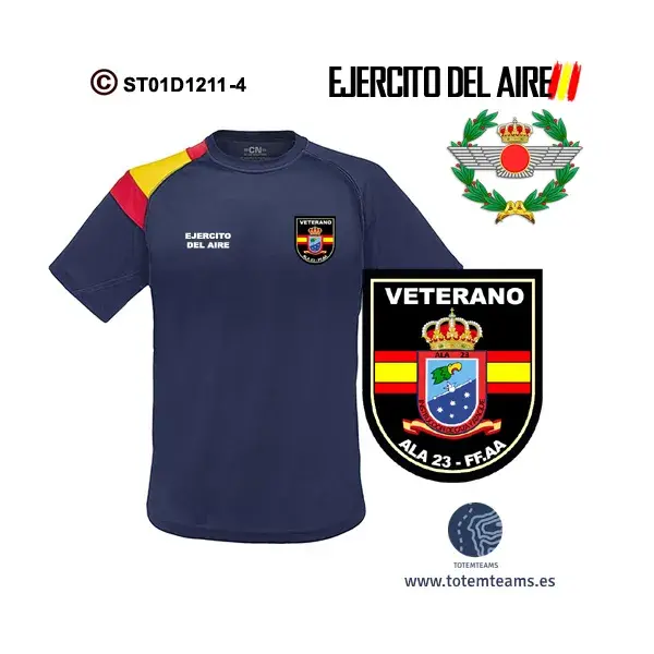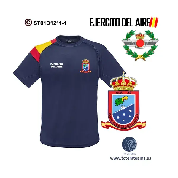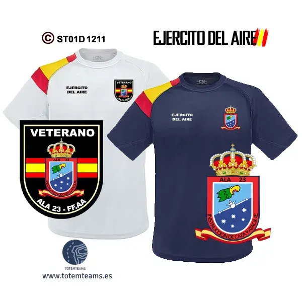 Camiseta MAPER ALA 23 Ejercito del Aire, puedes adquirirla en modelo bandera en los colores marino y blanco, y el modelo liso en marino, negro y blanco.