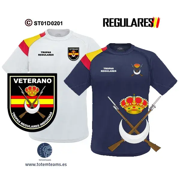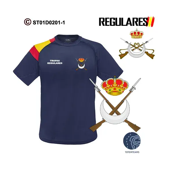 Camiseta Tropas Regulares, puedes adquirirla en modelo bandera en los colores marino y blanco, y el modelo liso en marino, negro y blanco.