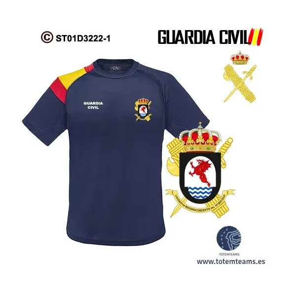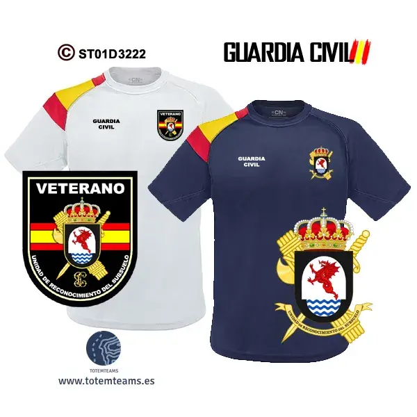 Camiseta URS Unidad de Reconocimiento del Subsuelo Guardia Civil, puedes adquirirla en modelo bandera en los colores marino y blanco, y el modelo liso en marino, negro y blanco.