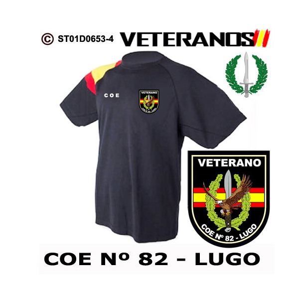Camiseta Veterano COE 82 Lugo – Boina Verde, puedes adquirirla en modelo bandera en los colores marino y blanco, y el modelo liso en marino, negro y blanco.