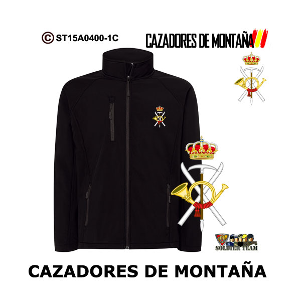 Chaqueta Cazadores de Montaña, Chaqueta softshell para hombre, con tejido interior de forro polar en el mismo tono. Tiene cremallera entera, 3 bolsillos laterales y 3 capas con membranas transpirables. Un complemento perfecto para el uniforme laboral cuando se trabaja en exteriores o para actividades al aire libre. Disponible en talla S hasta la 4XL.