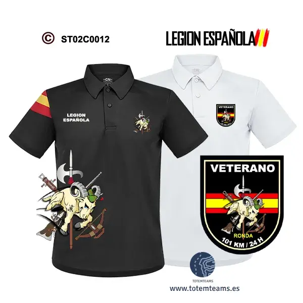Polo-Bandera Ronda 101 Kilómetros 24 Horas Legión Española con detalle de bandera de España en el hombro.