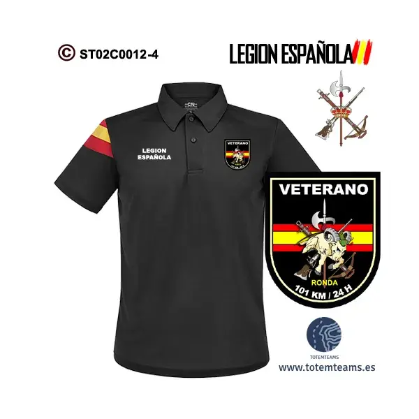 Polo-Bandera Ronda 101 Kilómetros 24 Horas Legión Española con composición 100% poliéster técnico de 145 grs/m2.