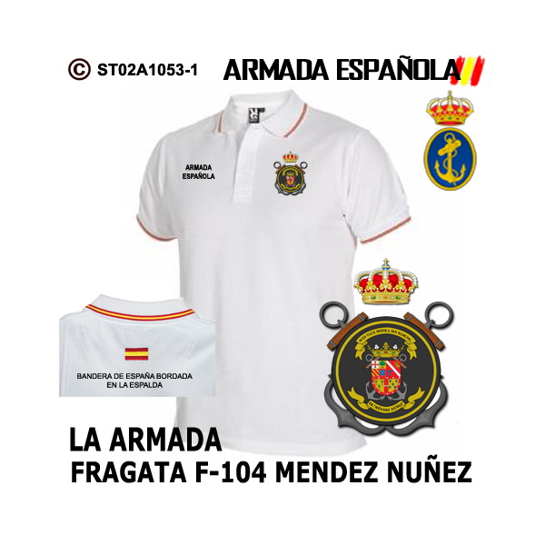Polo Fragata Méndez Núñez F-104 – Armada Española, puedes adquirirlo en diferentes colores:
