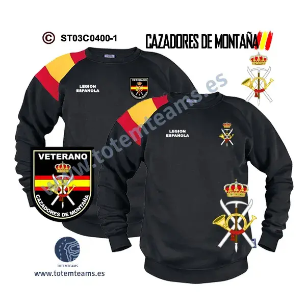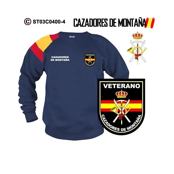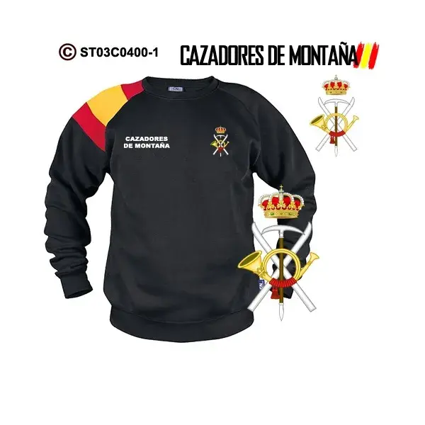 Sudadera-bandera Cazadores de Montaña, puedes adquirirla en diferentes colores para que elijas la que mas te gusta.