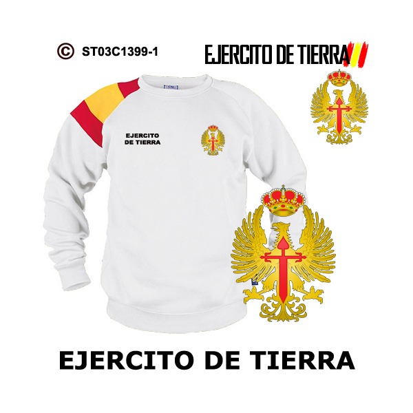 Sudadera-bandera Ejército de Tierra, puedes adquirirla en los colores caqui, marino, negro y blanco para que elijas la que más te gusta.