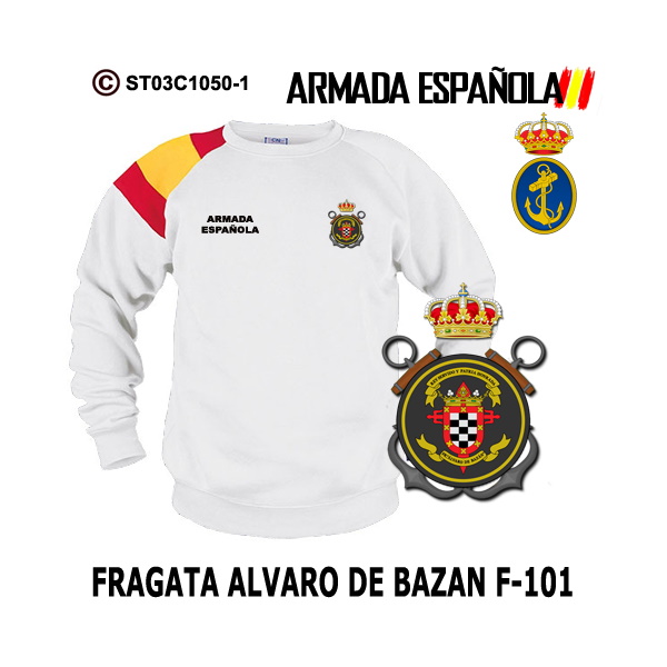 Sudadera-bandera Fragata Alvaro de Bazán F-101 – Armada Española, puedes adquirirla en los colores marino, negro y blanco para que elijas la que mas te gusta.
