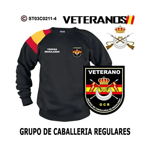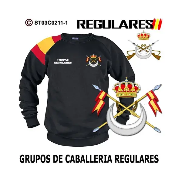 Sudadera-bandera Grupos de Caballería Regulares, puedes adquirirla en los colores marino, negro y blanco para que elijas la que mas te gusta.