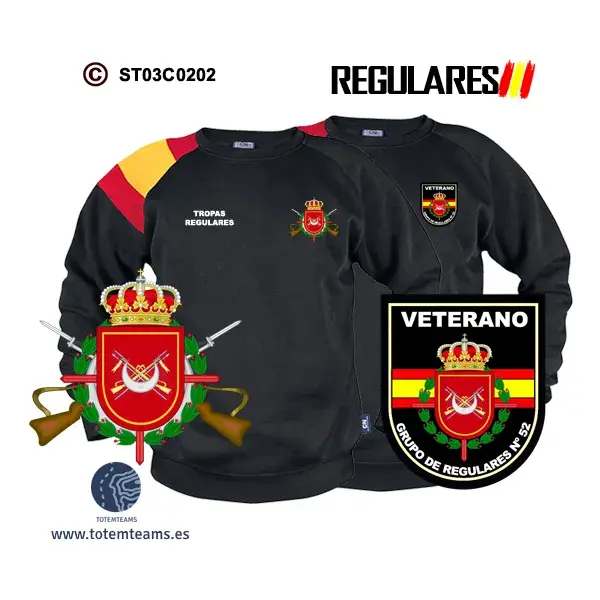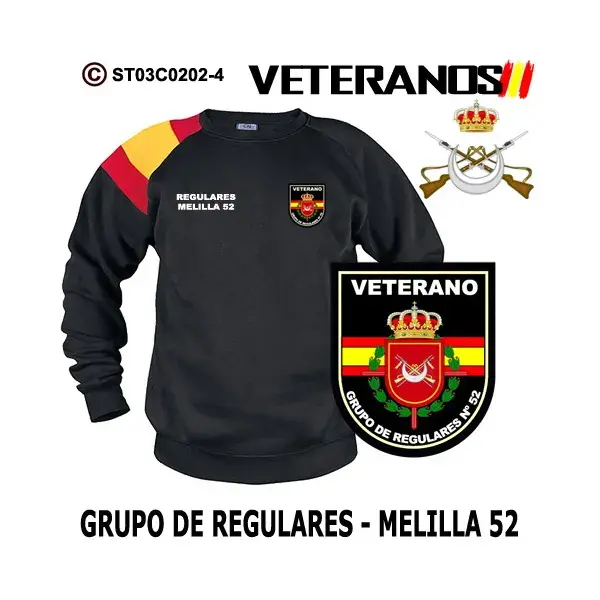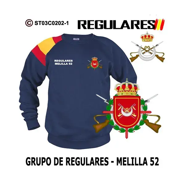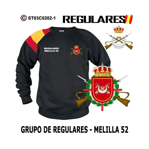 Sudadera-bandera Melilla 52 Grupo de Regulares, puedes adquirirla en los colores marino, negro y blanco para que elijas la que mas te gusta.