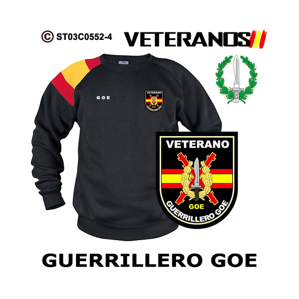 Sudadera-bandera Veterano Guerrillero GOE – Boina Verde, puedes adquirirla en los colores marino, negro y blanco para que elijas la que mas te gusta.
