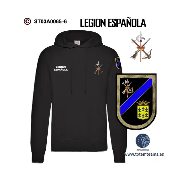 Sudadera-capucha 4º Tercio Alejandro Farnesio – Legión Española, puedes adquirirla en los colores marino, negro y blanco para que elijas la que más te gusta.