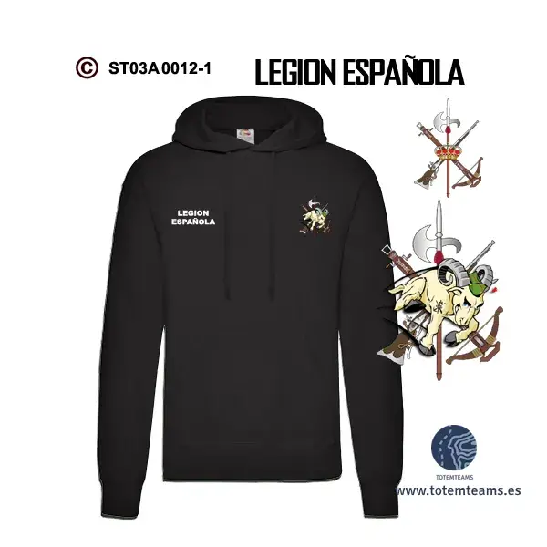 Sudadera-capucha Ronda 101 Kilómetros 24 Horas Legión Española, puedes adquirirla en los colores marino, negro y blanco para que elijas la que más te gusta.