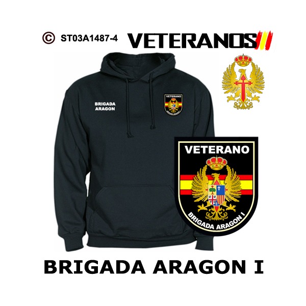 Sudadera-capucha Veterano Brigada Aragón I, puedes adquirirla en los colores negro, marino y blanco para que elijas la que más te gusta.