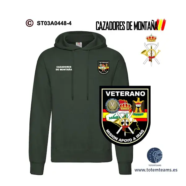 Sudadera-capucha Veterano de Iraq Cazadores de Montaña, puedes adquirirla en los colores marino, negro y blanco para que elijas la que mas te gusta.