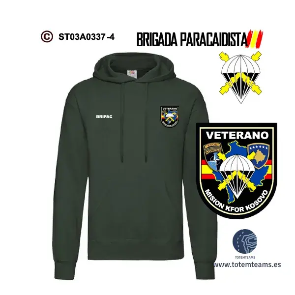Sudadera-capucha Veterano de Kosovo BRIPAC, puedes adquirirla en los colores marino, negro y blanco para que elijas la que mas te gusta.