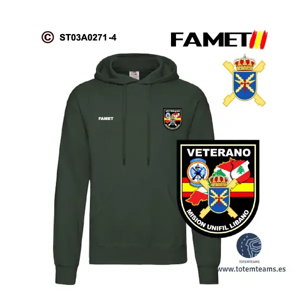 Sudadera-capucha Veterano de Líbano FAMET, puedes adquirirla en los colores marino, negro y blanco para que elijas la que más te gusta.