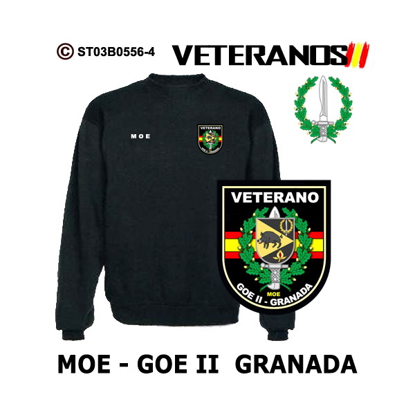 Sudadera-clásica Veterano MOE-GOE II Granada – Boina Verde, puedes adquirirla en los colores marino, negro y blanco para que elijas la que mas te gusta.