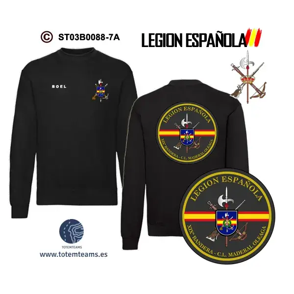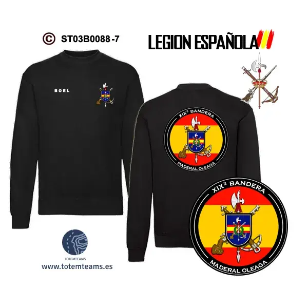 Sudadera-ClásicaES XIXª Bandera Maderal Oleaga – BOEL, puedes adquirirla en los colores marino, negro y blanco para que elijas la que más te gusta. contigo.